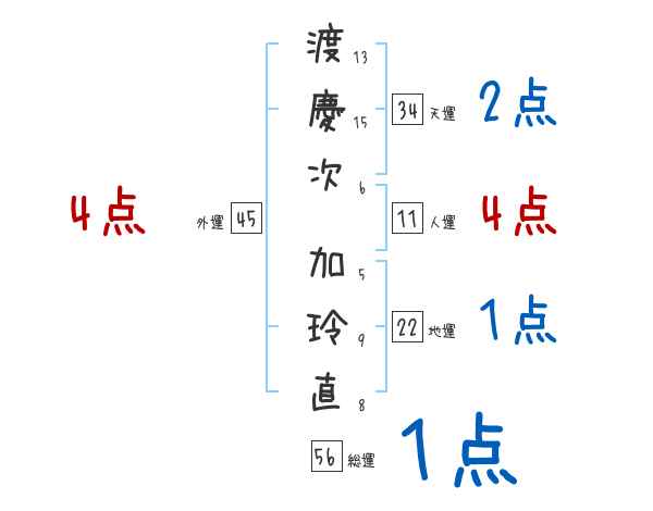 渡慶次加玲直さんの画数の鑑定結果
