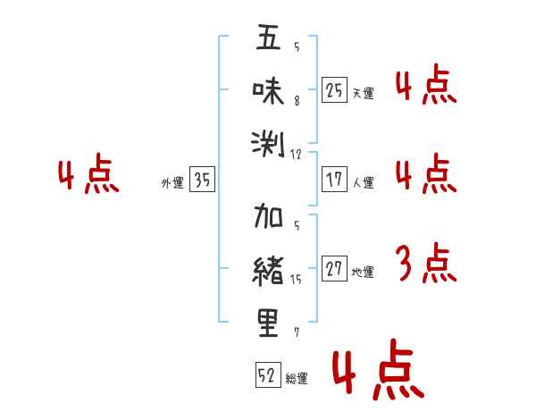 五味渕加緒里さんの画数の鑑定結果