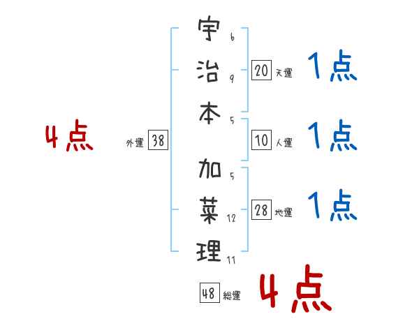 外運![]() | 宇治本加菜理さんの外運は38画の4つ星!温厚な性格で技術的な才能を発揮する。職人的な仕事に向いている。 生活面を象徴する運勢です。外部から受ける影響力を表し、結婚運、家庭運や職場、環境への順応性を表します。 |