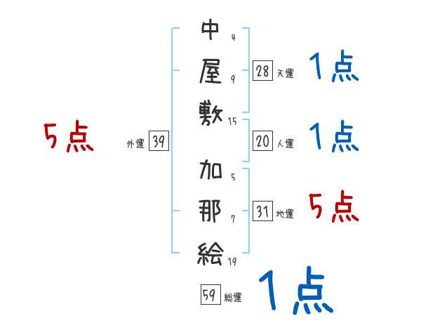 外運![]() | 中屋敷加那絵さんの外運は39画の5つ星!社交性に優れ人望が厚い。人の上に立ち成功する。 生活面を象徴する運勢です。外部から受ける影響力を表し、結婚運、家庭運や職場、環境への順応性を表します。 |