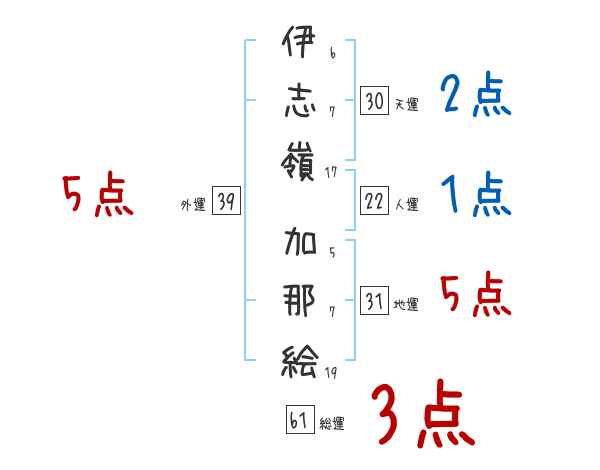 外運![]() | 伊志嶺加那絵さんの外運は39画の5つ星!社交性に優れ人望が厚い。人の上に立ち成功する。 生活面を象徴する運勢です。外部から受ける影響力を表し、結婚運、家庭運や職場、環境への順応性を表します。 |