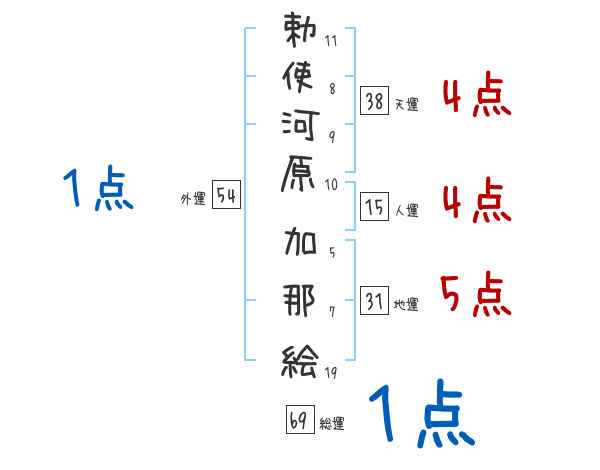 天運![]() | 勅使河原加那絵さんの天運は38画の4つ星!温厚な性格で技術的な才能を発揮する。職人的な仕事に向いている。 家系が持つ宿命的な運勢を表します。祖先から受け継いだ苗字ですので自分の力が及びません。家柄を象徴します。 |