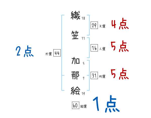 織笠加那絵さんの画数の鑑定結果