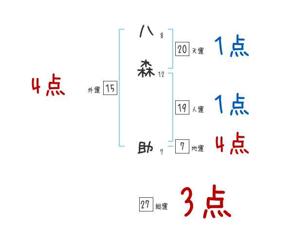 八森助さんの画数の鑑定結果