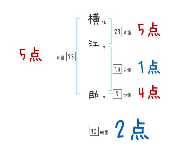 横江助さんの画数の鑑定結果