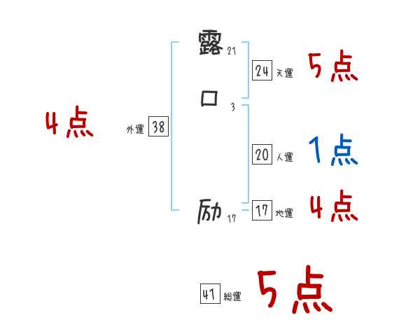 総運![]() | 露口励さんの総運は41画の5つ星!大志を抱き、目標に向かって実力を発揮し達成する。温和な性格。 あなたの人生を表す1番重要な運勢です。生涯を通じて影響する総合運となり、主に50歳以降の晩年期に影響を及ぼします。 |