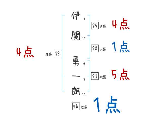 伊関勇一朗さんの画数の鑑定結果