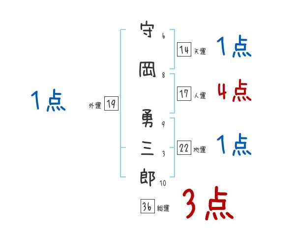 総運![]() | 守岡勇三郎さんの総運は36画の3つ星!先見性が豊かです。多少神経質で苦労することも。 あなたの人生を表す1番重要な運勢です。生涯を通じて影響する総合運となり、主に50歳以降の晩年期に影響を及ぼします。 |