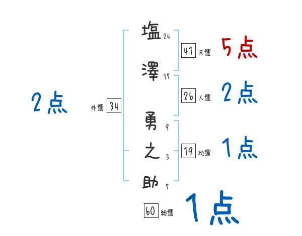 塩澤勇之助さんの画数の鑑定結果
