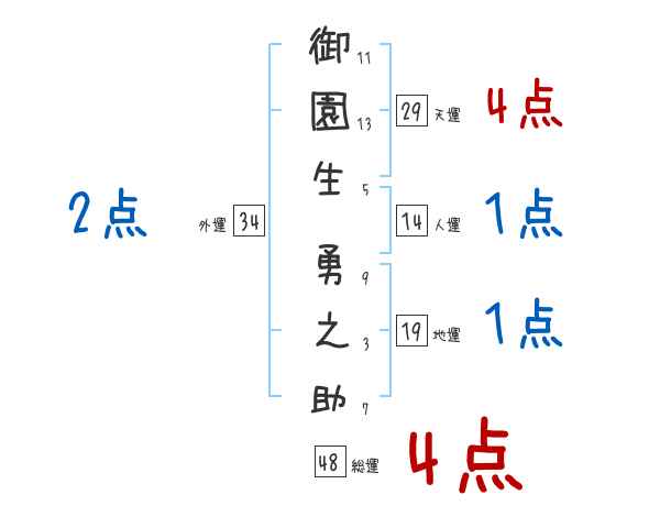 御園生勇之助さんの画数の鑑定結果