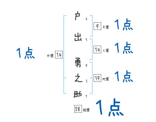 戸出勇之助さんの画数の鑑定結果