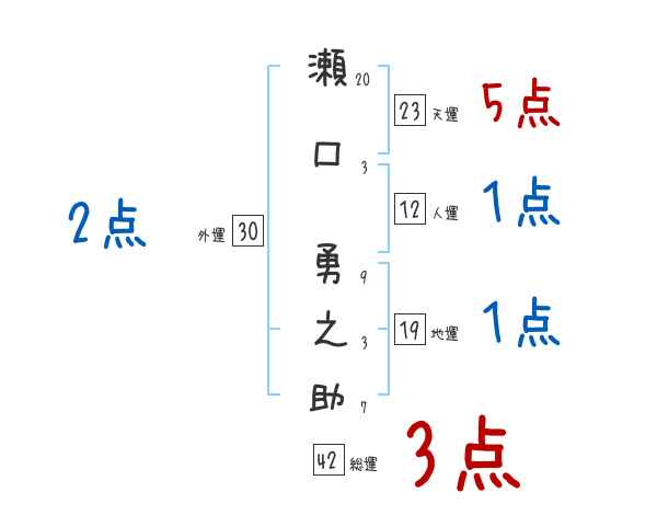 総運![]() | 瀬口勇之助さんの総運は42画の3つ星!病気に注意。多芸であるが消極的でおとなしい。 あなたの人生を表す1番重要な運勢です。生涯を通じて影響する総合運となり、主に50歳以降の晩年期に影響を及ぼします。 |