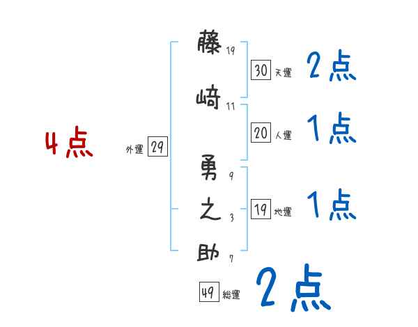藤﨑勇之助さんの画数の鑑定結果