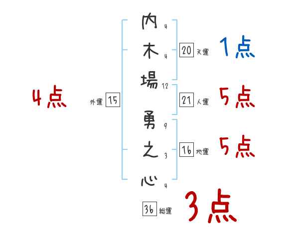 内木場勇之心さんの画数の鑑定結果
