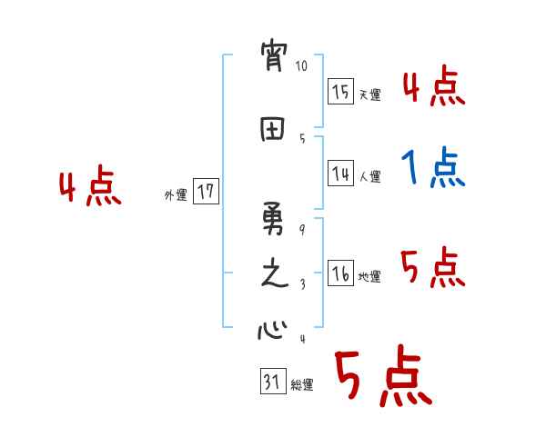 宵田勇之心さんの画数の鑑定結果