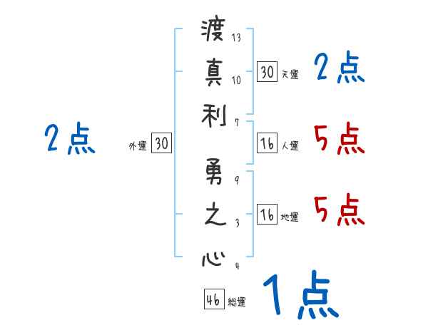 天運![]() | 渡真利勇之心さんの天運は30画の2つ星!浮き沈みの激しさに注意しましょう。 家系が持つ宿命的な運勢を表します。祖先から受け継いだ苗字ですので自分の力が及びません。家柄を象徴します。 |