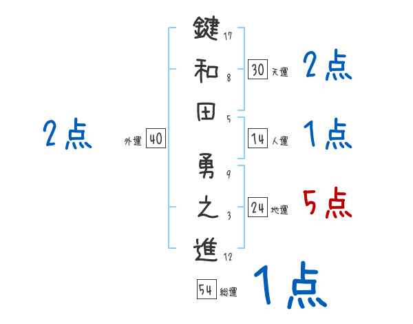 鍵和田勇之進さんの画数の鑑定結果