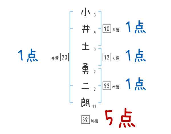 総運![]() | 小井土勇二朗さんの総運は32画の5つ星!柔軟性があり成功する。チャンスが多く金運が良い。 あなたの人生を表す1番重要な運勢です。生涯を通じて影響する総合運となり、主に50歳以降の晩年期に影響を及ぼします。 |
