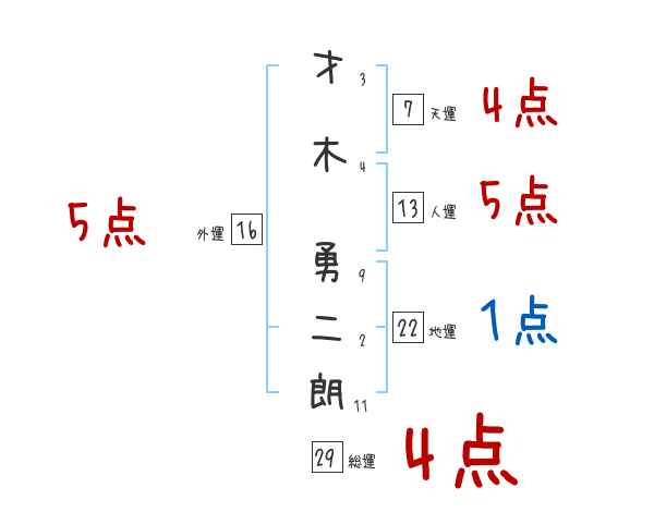 外運![]() | 才木勇二朗さんの外運は16画の5つ星!人望が厚く大きく発展する。逆転成功が見える。 生活面を象徴する運勢です。外部から受ける影響力を表し、結婚運、家庭運や職場、環境への順応性を表します。 |