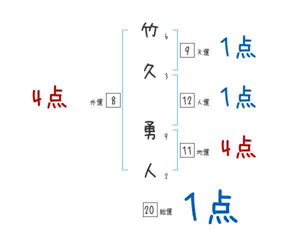 竹久勇人さんの画数の鑑定結果