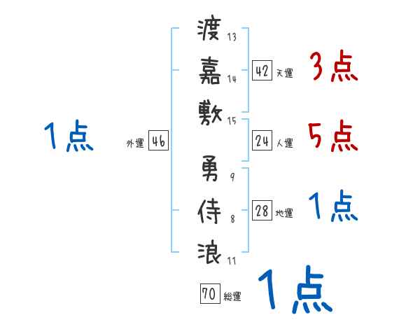 渡嘉敷勇侍浪さんの画数の鑑定結果