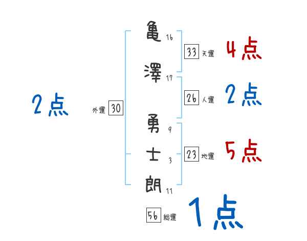 亀澤勇士朗さんの画数の鑑定結果