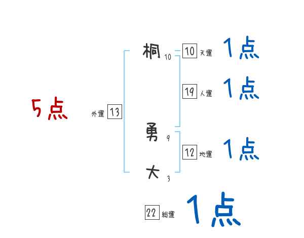 桐勇大さんの画数の鑑定結果