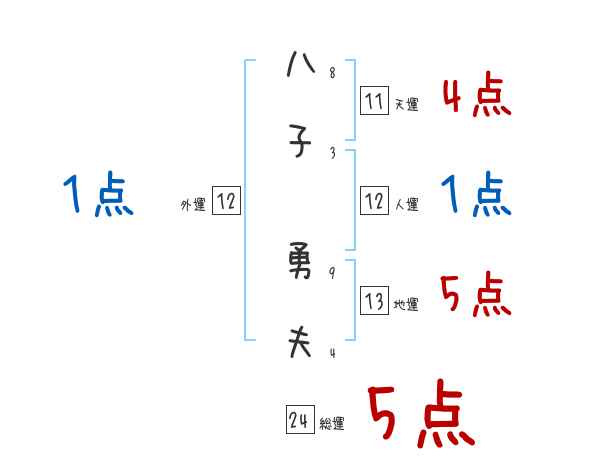 八子勇夫さんの画数の鑑定結果