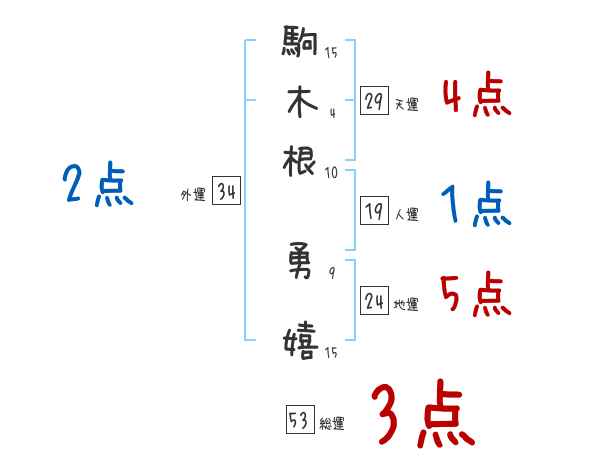 天運![]() | 駒木根勇嬉さんの天運は29画の4つ星!完全主義で才能がある。厳格な心の持ち主。 家系が持つ宿命的な運勢を表します。祖先から受け継いだ苗字ですので自分の力が及びません。家柄を象徴します。 |