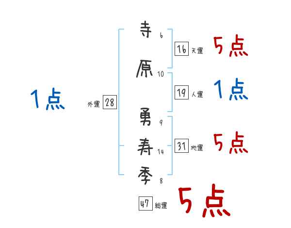 寺原勇寿季さんの画数の鑑定結果