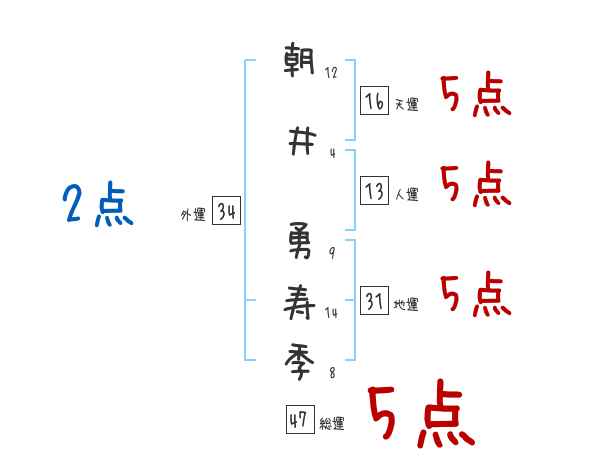 朝井勇寿季さんの画数の鑑定結果