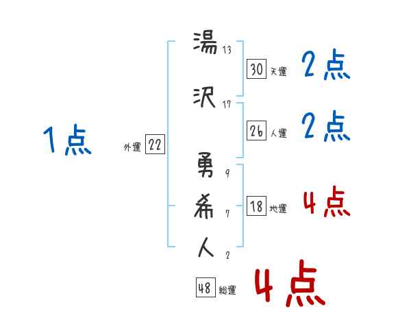 湯沢勇希人さんの画数の鑑定結果