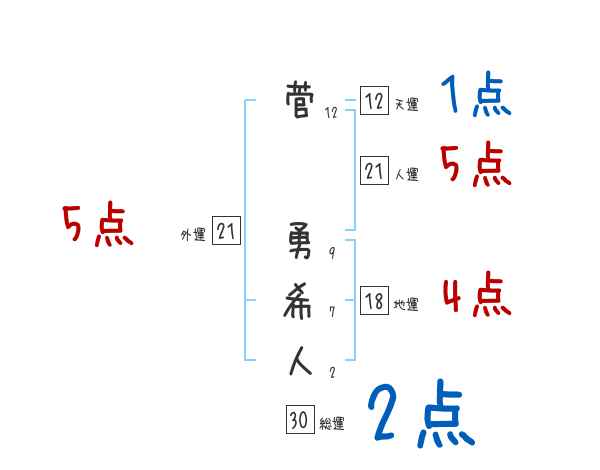 菅勇希人さんの画数の鑑定結果
