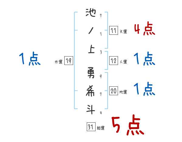 池ノ上勇希斗さんの画数の鑑定結果