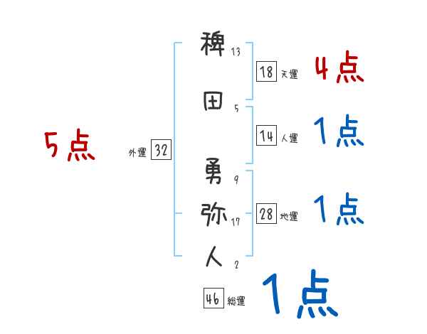 稗田勇弥人さんの画数の鑑定結果