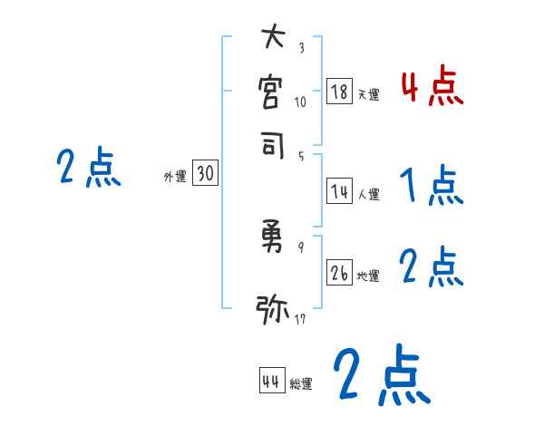 大宮司勇弥さんの画数の鑑定結果