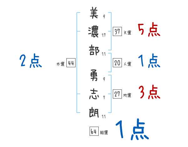 外運![]() | 美濃部勇志朗さんの外運は44画の2つ星!誠実で慎重な性格。物事を考えすぎないように注意しましょう。 生活面を象徴する運勢です。外部から受ける影響力を表し、結婚運、家庭運や職場、環境への順応性を表します。 |