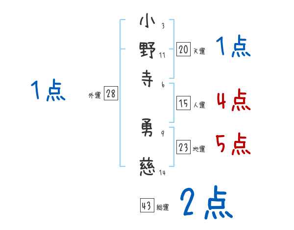 小野寺勇慈さんの画数の鑑定結果