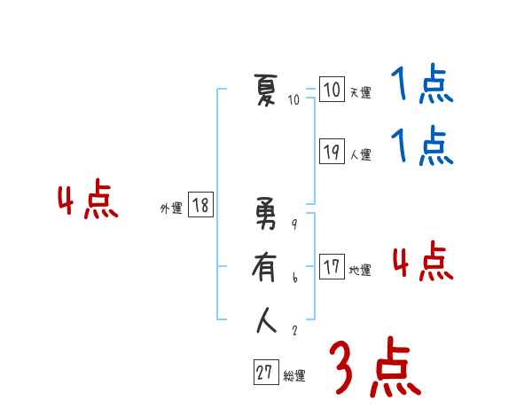 夏勇有人さんの画数の鑑定結果