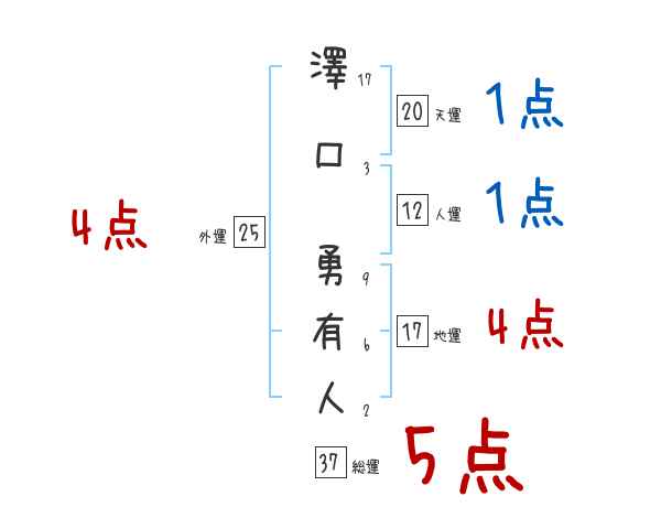 澤口勇有人さんの画数の鑑定結果