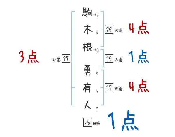 駒木根勇有人さんの画数の鑑定結果