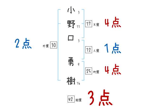 総運![]() | 小野口勇樹さんの総運は42画の3つ星!病気に注意。多芸であるが消極的でおとなしい。 あなたの人生を表す1番重要な運勢です。生涯を通じて影響する総合運となり、主に50歳以降の晩年期に影響を及ぼします。 |