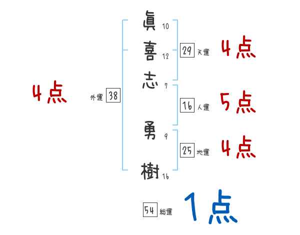 外運![]() | 眞喜志勇樹さんの外運は38画の4つ星!温厚な性格で技術的な才能を発揮する。職人的な仕事に向いている。 生活面を象徴する運勢です。外部から受ける影響力を表し、結婚運、家庭運や職場、環境への順応性を表します。 |