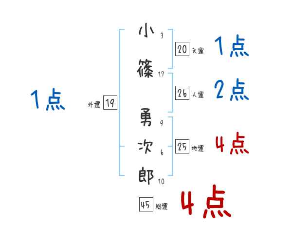小篠勇次郎さんの画数の鑑定結果