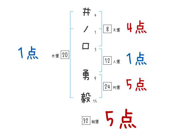 井ノ口勇毅さんの画数の鑑定結果
