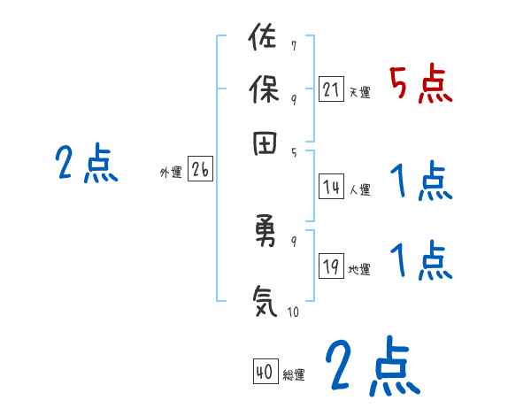 天運![]() | 佐保田勇気さんの天運は21画の5つ星!統率力がある。独立し成功する。名誉を手に入れる。 家系が持つ宿命的な運勢を表します。祖先から受け継いだ苗字ですので自分の力が及びません。家柄を象徴します。 |