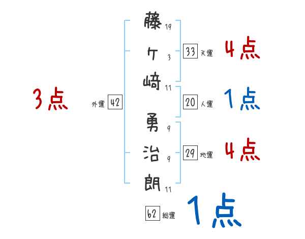 藤ヶ﨑勇治朗さんの画数の鑑定結果