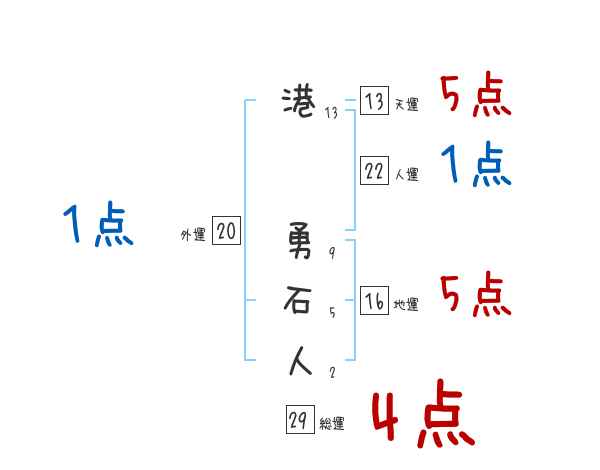 港勇石人さんの画数の鑑定結果