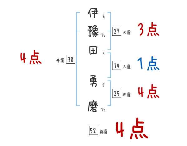 総運![]() | 伊豫田勇磨さんの総運は52画の4つ星!先見性と独創性に優れ考える力がある。強運の持ち主。 あなたの人生を表す1番重要な運勢です。生涯を通じて影響する総合運となり、主に50歳以降の晩年期に影響を及ぼします。 |