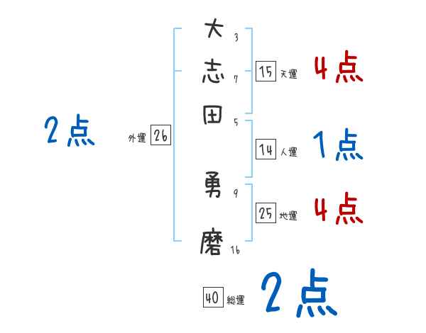総運![]() | 大志田勇磨さんの総運は40画の2つ星!自信過剰で物事に固執するためトラブルに注意。 あなたの人生を表す1番重要な運勢です。生涯を通じて影響する総合運となり、主に50歳以降の晩年期に影響を及ぼします。 |